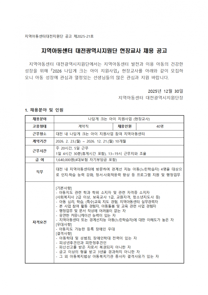 [공지] 2026 나답게크는아이 현장교사 채용 공고(연장)