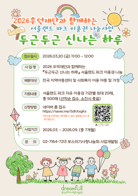 나. 사업명: 2026 우덕재단과 함께하는「두근두근 신나는 하루」서울랜드 파크 이용권 나눔