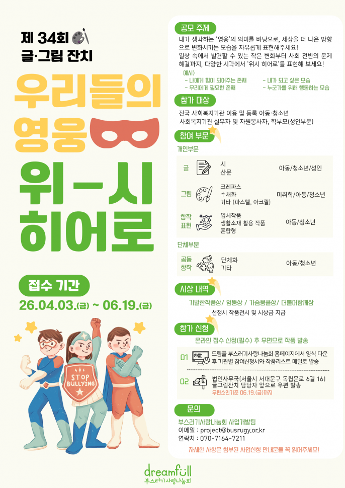 부스러기사랑나눔회에서 제34회 글그림잔치 "우리들의 영웅, 위시히어로"